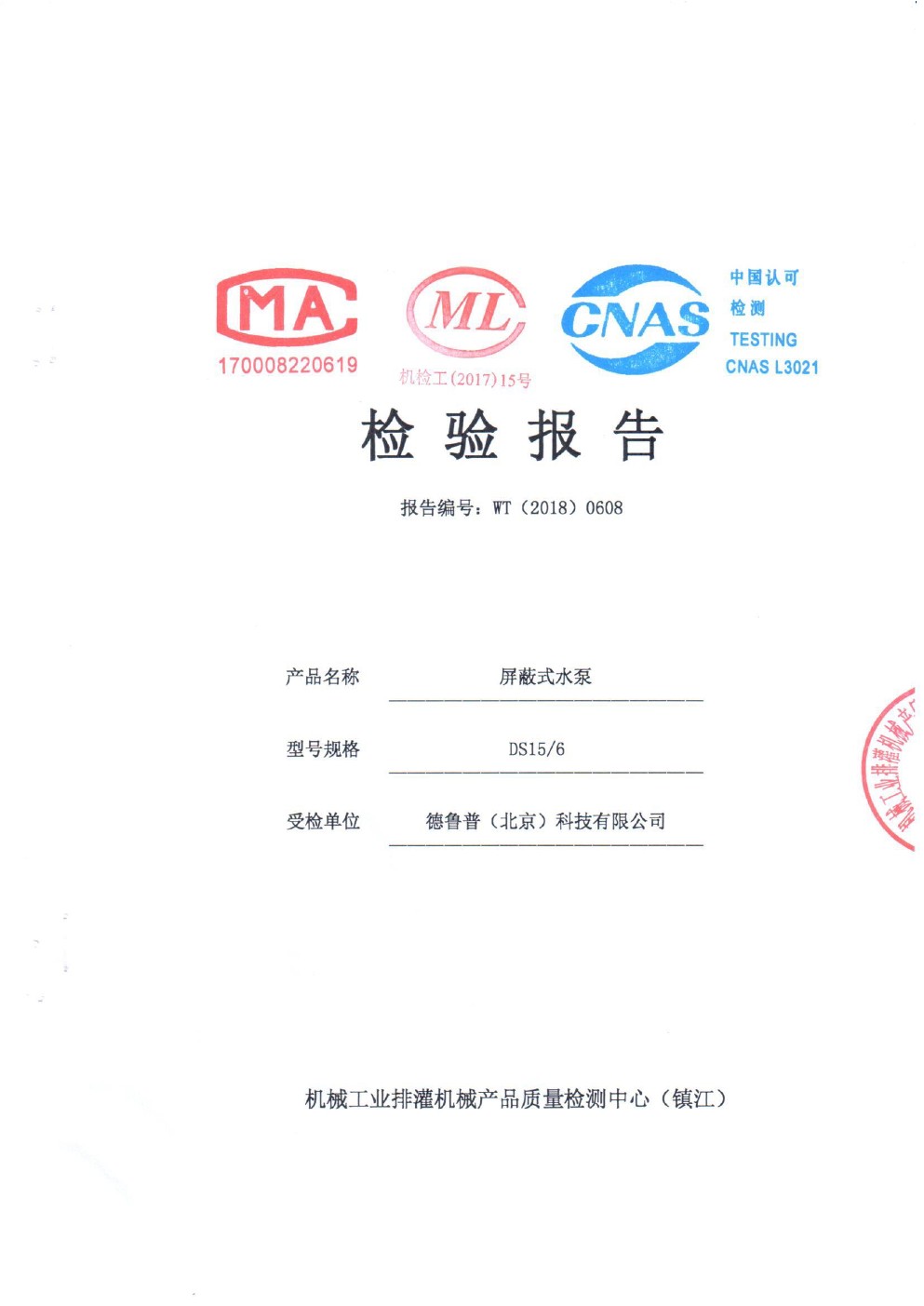 近期,凝聚德鲁普人工匠精神的DS系列屏蔽泵产品顺利通过江苏大学机械工业排灌机械产品质量检测中心的检测,其优异的水力性能,高效率的能量转化,长期运转的稳定可靠性得到了权威机构的背书和认可。