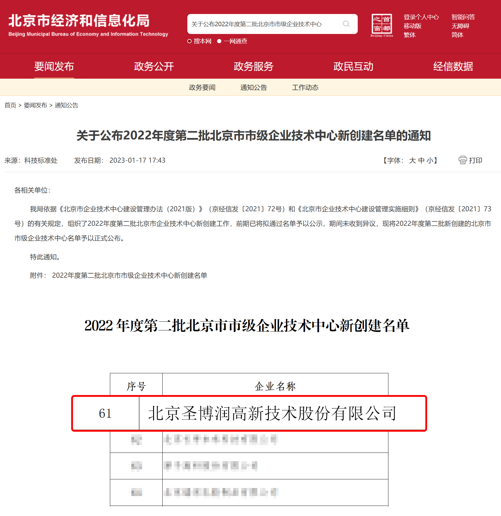 近日,北京(jing)(jing)市(shi)(shi)經(jing)濟(ji)和信息化局(ju)發布的(de)《2022年度第(di)二(er)批北京(jing)(jing)市(shi)(shi)市(shi)(shi)級企(qi)(qi)業技(ji)術中心新創建(jian)名單》公(gong)示期滿,北京(jing)(jing)圣博(bo)潤高新技(ji)術股(gu)份(fen)有限公(gong)司正式獲(huo)得“北京(jing)(jing)市(shi)(shi)市(shi)(shi)級企(qi)(qi)業技(ji)術中心”認定(ding)。這(zhe)是圣博(bo)潤近期繼評“北京(jing)(jing)市(shi)(shi)專精特新中小企(qi)(qi)業”后,又一極具“含金量”的(de)資格認證。