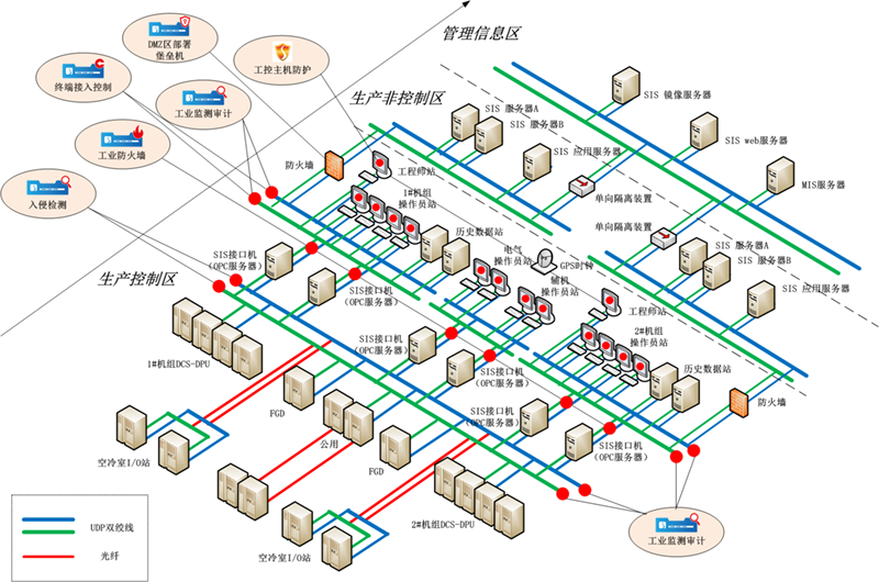 其(qi)他安(an)(an)(an)(an)全(quan)控(kong)制(zhi)(zhi)措施可包(bao)括防火墻(qiang)、VLAN劃分、單(dan)向(xiang)數據(ju)(ju)隔離裝置(zhi)等(deng)。中心站與(yu)其(qi)它(ta)非工(gong)(gong)(gong)業(ye)控(kong)制(zhi)(zhi)網(wang)(wang)(wang)絡(luo)應(ying)(ying)斷(duan)開所有不必要的(de)(de)連接,防火墻(qiang),實現信息(xi)安(an)(an)(an)(an)全(quan)控(kong)制(zhi)(zhi)功能。與(yu)辦公網(wang)(wang)(wang)的(de)(de)隔離宜采(cai)用(yong)單(dan)向(xiang)數據(ju)(ju)隔離裝置(zhi),而與(yu)優化調度網(wang)(wang)(wang)絡(luo)的(de)(de)規則視業(ye)務(wu)需要決定是否采(cai)用(yong)單(dan)向(xiang)數據(ju)(ju)隔離裝置(zhi)。新形勢下(xia),電(dian)力(li)企(qi)業(ye)應(ying)(ying)在(zai)36號文的(de)(de)基(ji)礎上,根據(ju)(ju)《工(gong)(gong)(gong)業(ye)互(hu)聯網(wang)(wang)(wang)安(an)(an)(an)(an)全(quan)防護工(gong)(gong)(gong)作指南》、《工(gong)(gong)(gong)業(ye)互(hu)聯網(wang)(wang)(wang)安(an)(an)(an)(an)全(quan)防護檢(jian)測指南》開展從設(she)備安(an)(an)(an)(an)全(quan)、控(kong)制(zhi)(zhi)安(an)(an)(an)(an)全(quan)、網(wang)(wang)(wang)絡(luo)安(an)(an)(an)(an)全(quan)、應(ying)(ying)用(yong)安(an)(an)(an)(an)全(quan)、數據(ju)(ju)安(an)(an)(an)(an)全(quan)、物理(li)(li)和環境安(an)(an)(an)(an)全(quan)、安(an)(an)(an)(an)全(quan)策略(lve)和管理(li)(li)制(zhi)(zhi)度等(deng)多個(ge)方面(mian)的(de)(de)工(gong)(gong)(gong)業(ye)控(kong)制(zhi)(zhi)系(xi)統(tong)網(wang)(wang)(wang)絡(luo)安(an)(an)(an)(an)全(quan)事件的(de)(de)防護、檢(jian)測、預警和應(ying)(ying)急處置(zhi)等(deng)工(gong)(gong)(gong)作。