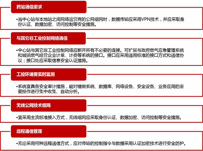 《規范》說明了市政燃(ran)氣自動化系統建設的安全性是指核心數據和報警數據要完整和可靠,具備嚴格的用戶權限功能,防病毒及黑客攻擊、保證燃氣系統的安全操作運行。規定市政燃(ran)氣自動(dong)化系統建(jian)設(she)和運(yun)行維護(hu)應具備安(an)全防(fang)(fang)護(hu)和應急措施,可根據需要配置網(wang)絡防(fang)(fang)火墻、網(wang)閘(zha)等(deng)安(an)全網(wang)關類(lei)設(she)備、入侵檢(jian)測類(lei)設(she)備等(deng)。