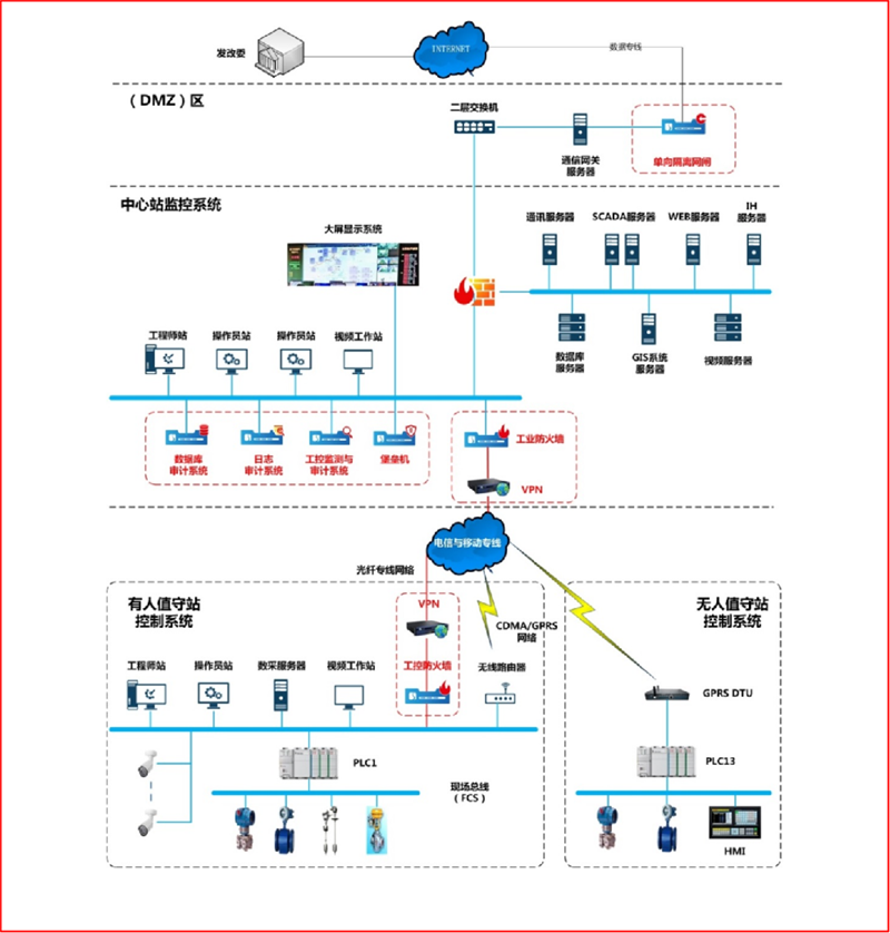 其他安(an)全控制措(cuo)施可包括防火墻、VLAN劃(hua)分、單(dan)向(xiang)數據隔(ge)離裝置等。中(zhong)心站與其它(ta)非工業(ye)控制網絡應斷開(kai)所有不(bu)必(bi)要的連接,防火墻,實現信息(xi)安(an)全控制功能。與辦公網的隔(ge)離宜采(cai)用單(dan)向(xiang)數據隔(ge)離裝置,而與優化調度網絡的規則視業(ye)務需要決定(ding)是否采(cai)用單(dan)向(xiang)數據隔(ge)離裝置。
