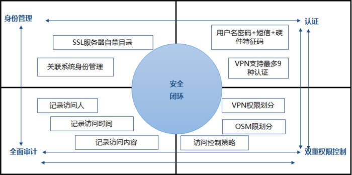 ● SSL VPN基于堡壘機的URL和賬號進行授權,確保遠程運維人員只可登錄堡壘機,并且只能使用自己的賬號登錄;